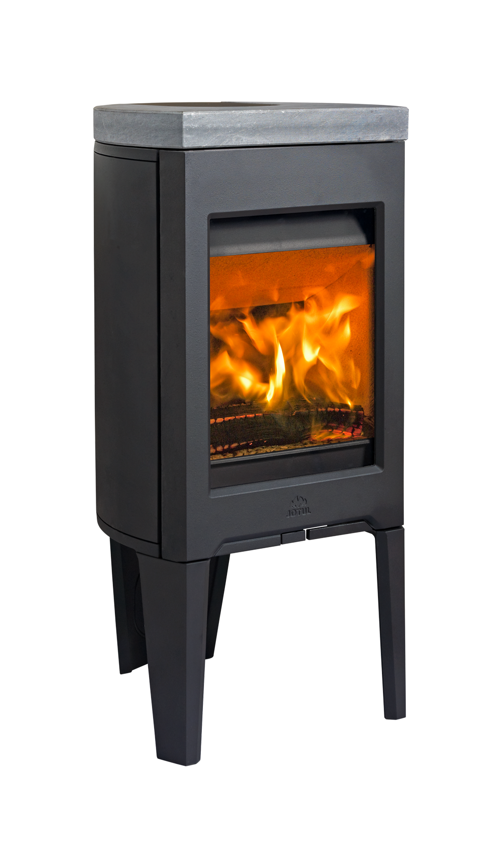 En liten og brukervennlig vedovn i prisvinnende design. Sokkelen består av tre stødige ben, som gir vedovnen et stramt og luftig uttrykk. Perfekt egnet for små rom og leiligheter. I Jøtul fokuserer vi på brukervennlige løsninger. Denne modellen er utstyrt med en praktisk askeskuff, som gjør det enkelt å fjerne aske, samt én lufteventil som gjør både opptenning og fyring til en enkel prosess. Du har også mulighet for å legge til varmelagrende kleberstein på toppen av vedovnen, som tilleggsutstyr. For å enklere opprettholde rent glass er vedovnen utstyrt med luftspyling som spyler luft ned langs innsiden av glasset.