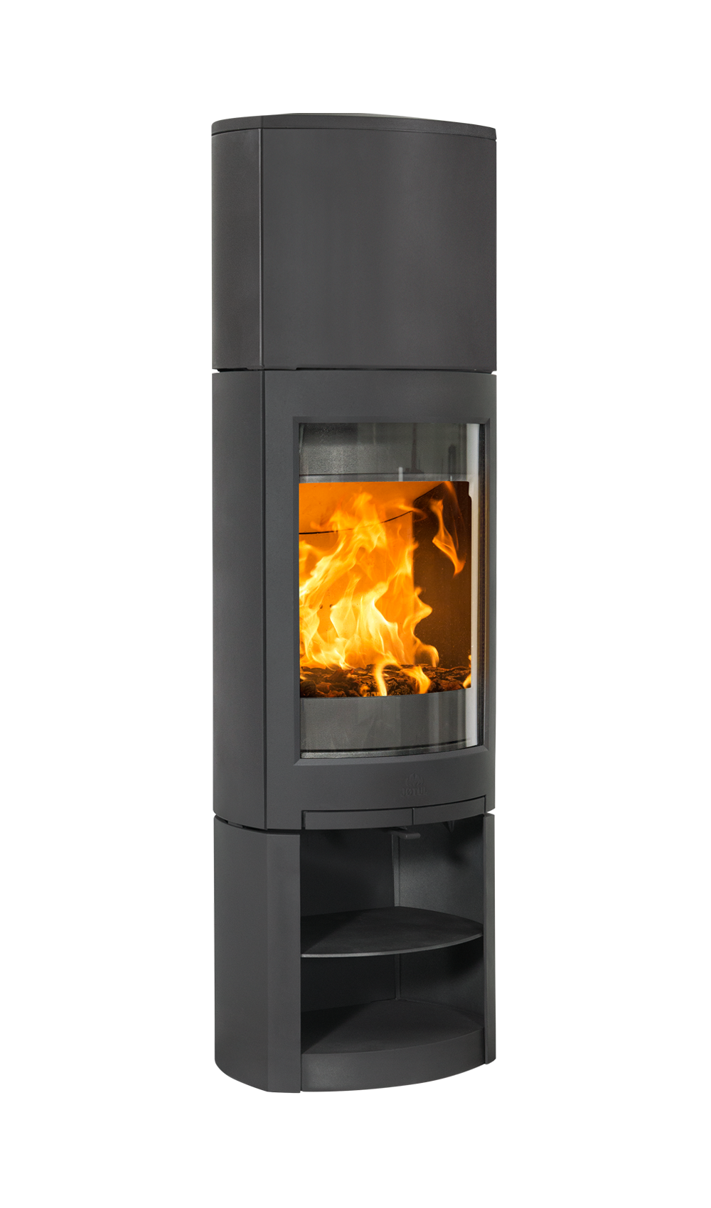 Høy varmelagrende vedovn i solid støpejern, med smart ‘Stay’-funksjon som holder døren åpen når du legger i ved. Vedovnen har mulighet for varmelagrende stein i toppen, som bidrar til å holde ekstra godt på varmen lenge etter at siste vedkubbe har brent ut. Den er i tillegg utstyrt med luftspyling som bidrar til å holde glasset renere. Brennkammeret har lyse brennplater som gir et luftig uttrykk. Én praktisk lufteventil sikrer enkel og riktig fyring. Belønningen er lavt vedforbruk og miljøvennlig forbrenning. Ønsker du å se flammene fra flere steder i rommet, kan dreiesett fås som tilleggsutstyr.