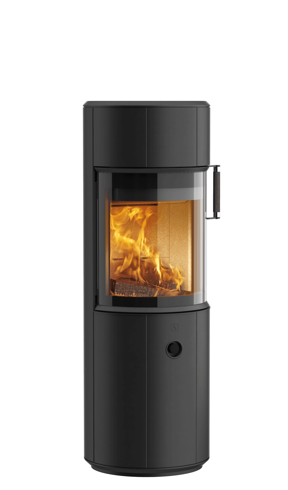 Håndtaket i sortbeiset eik gir en elegant kontrast til stålet, og kan enkelt byttes ut i ulike fargetoner og lengder for å matche interiøret ditt. En praktisk askeskuff gjør renholdet enkelt, slik at du kan bruke mer tid på å nyte varmen.